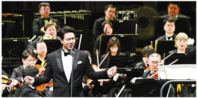 音乐会以一曲《鲁斯兰与柳德米拉》序曲激昂开场。随后,古筝协奏《望云赋》以清透灵动的音韵勾勒出云卷云舒的东方意境,歌剧选段《爱永在》则以深情的旋律吟咏出真挚隽永的家国情怀。琵琶协奏《丝路飞天》以繁复的指法与丰富的音色变化,再现丝绸之路上的风物与遐思。《鸟儿在风中歌唱》以极具艺术感染力的演绎,将深切而克制的悲情浸透于每个音符之中,直抵人心。《苗岭飞歌》一转情绪,以清亮悠扬的嗓音唤醒山野间蓬勃的生命气息,宛如晨光穿透层林。钢琴与乐团奏响《保卫黄河》,铿锵有力的琴声如浪潮奔涌,澎湃的激情与厚重的民族气魄震撼人心。